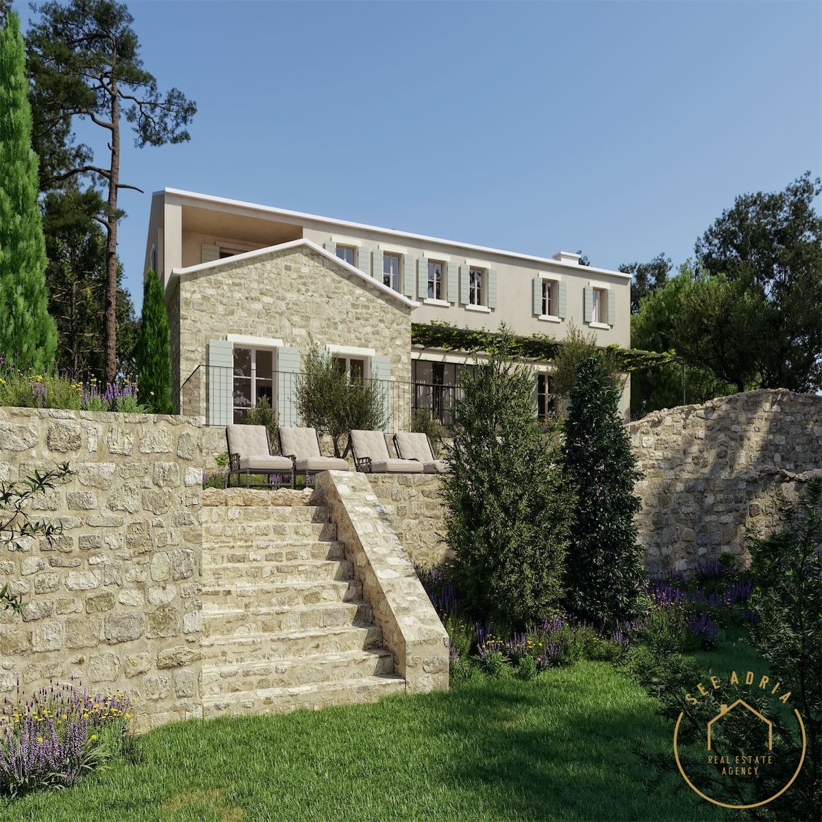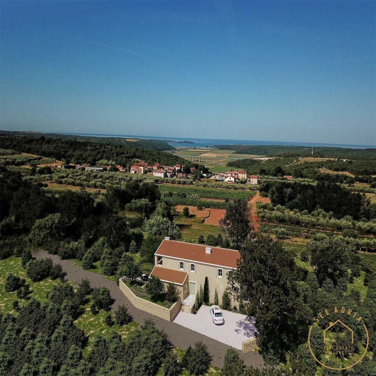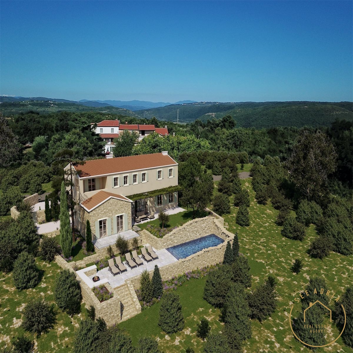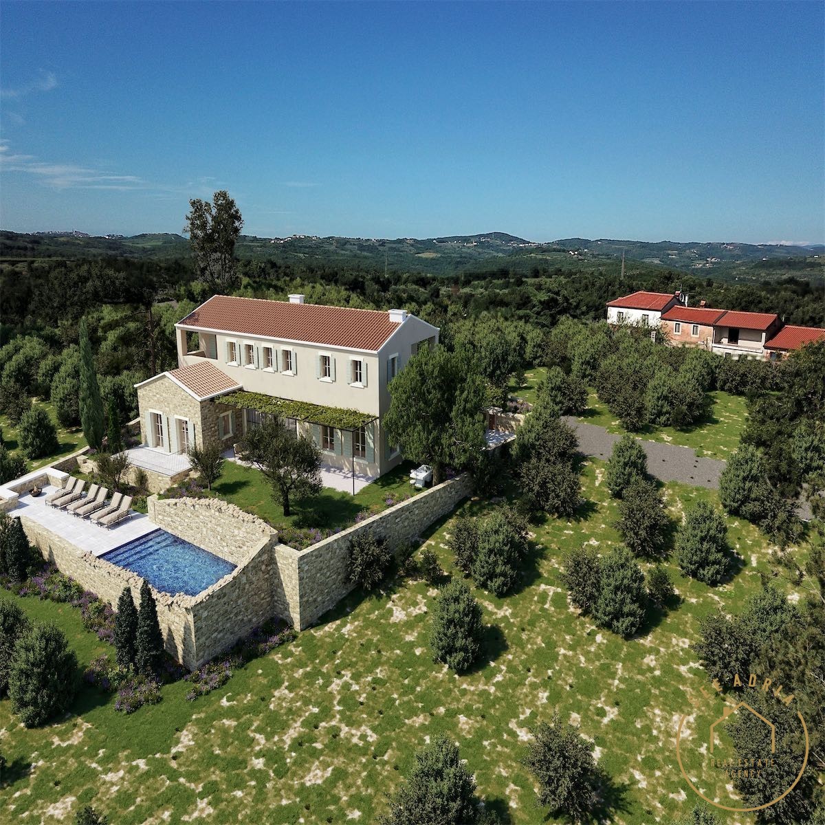 Die Villa liegt versteckt auf einem Hügel, vor dem sich das Tal des Flusses Mirna mit seiner Mündung und einem Blick auf die wunderschöne Adria erstreckt.