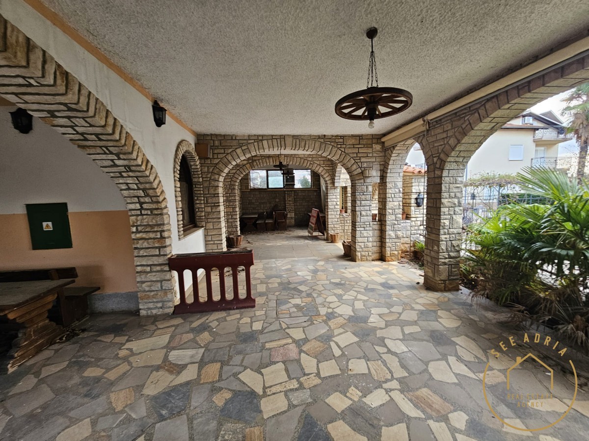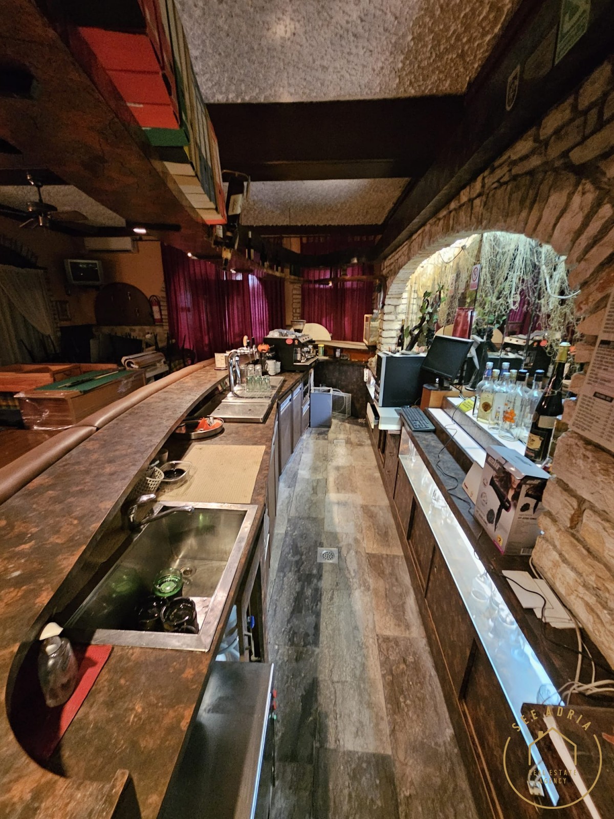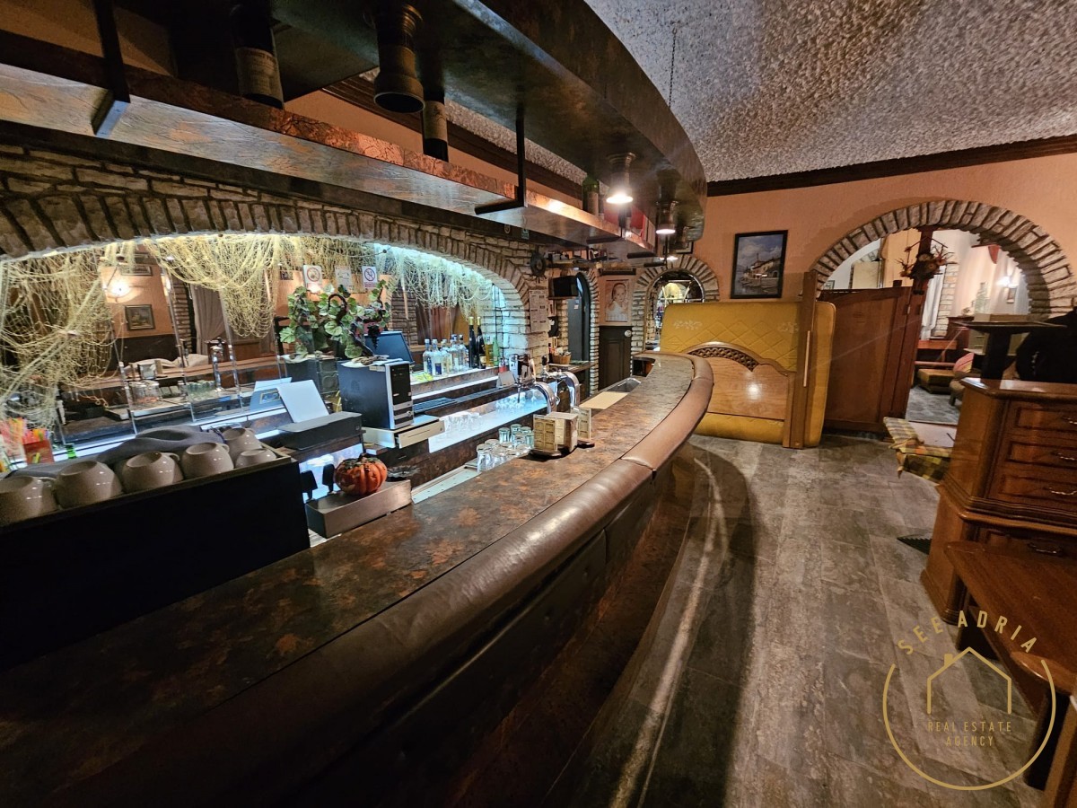 Bei dem Gebäude handelt es sich um ein eigenständiges Gebäude, in dem sich im Erdgeschoss ein Restaurant-ähnlicher Gastronomiebereich mit einem Hauptrestaurantsaal und einem kleinen Saal, einer Küche mit Nebenräumen, getrennten Sanitäranlagen für männliche und weibliche Gäste sowie einem Barbereich befindet. Die offene Außenterrasse ist in den Sommermonaten für die Bedienung der Gäste mit einem nicht überdachten und einem überdachten Teil ausgestattet. Im ersten Stock befindet sich eine größere Wohneinheit, die bis auf die offenen Terrassen, auf denen lediglich eine Abdichtung angebracht wurde, komplett fertiggestellt ist.