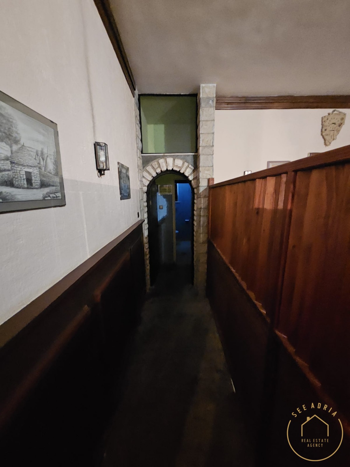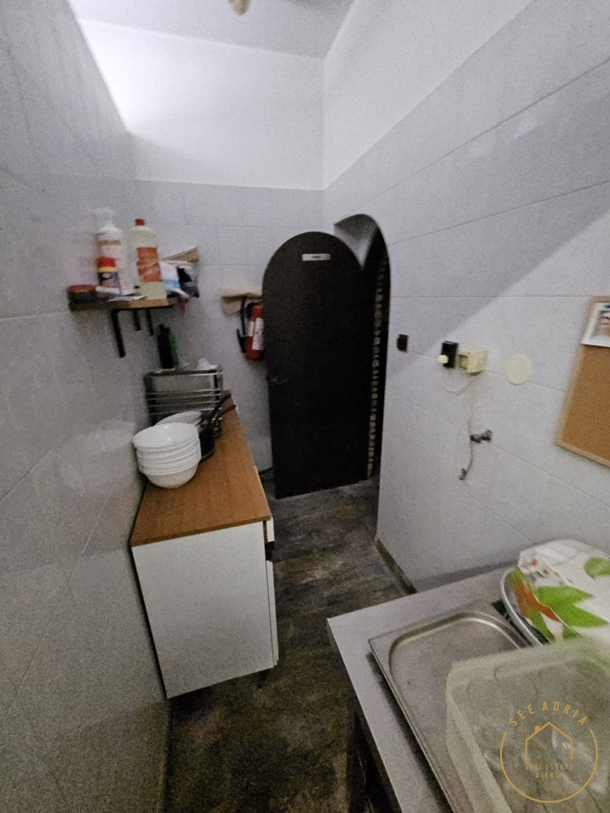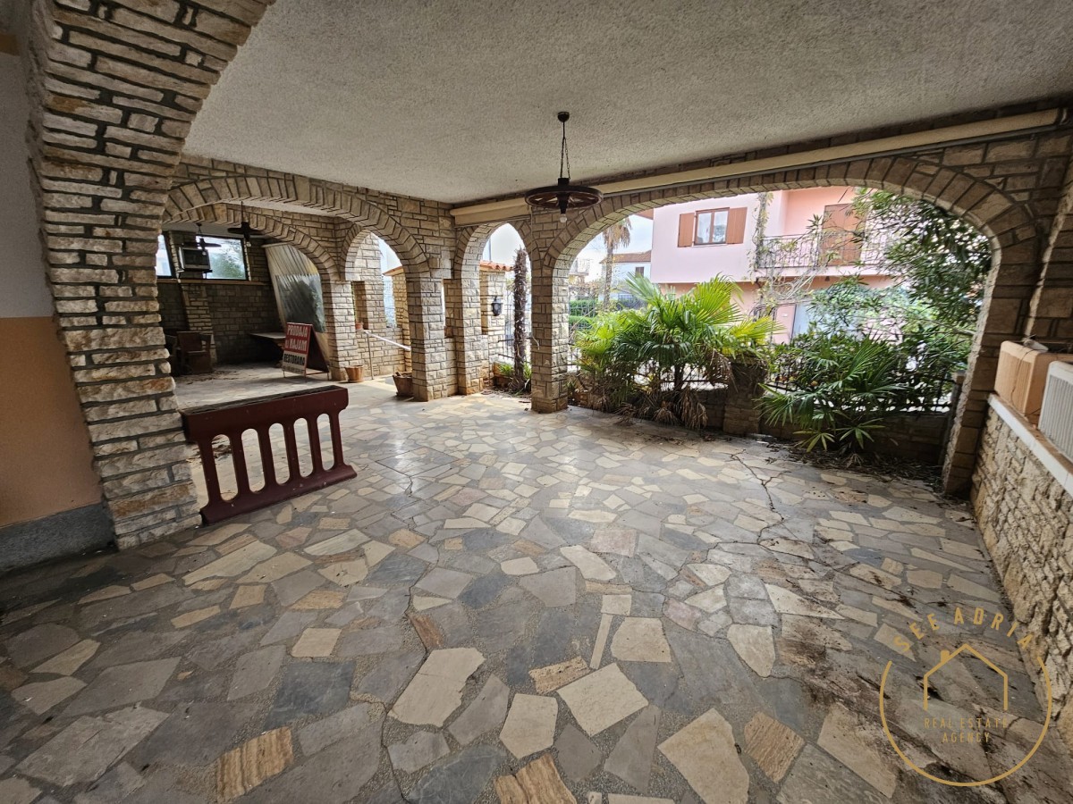 Bei dem Gebäude handelt es sich um ein eigenständiges Gebäude, in dem sich im Erdgeschoss ein Restaurant-ähnlicher Gastronomiebereich mit einem Hauptrestaurantsaal und einem kleinen Saal, einer Küche mit Nebenräumen, getrennten Sanitäranlagen für männliche und weibliche Gäste sowie einem Barbereich befindet. Die offene Außenterrasse ist in den Sommermonaten für die Bedienung der Gäste mit einem nicht überdachten und einem überdachten Teil ausgestattet. Im ersten Stock befindet sich eine größere Wohneinheit, die bis auf die offenen Terrassen, auf denen lediglich eine Abdichtung angebracht wurde, komplett fertiggestellt ist.