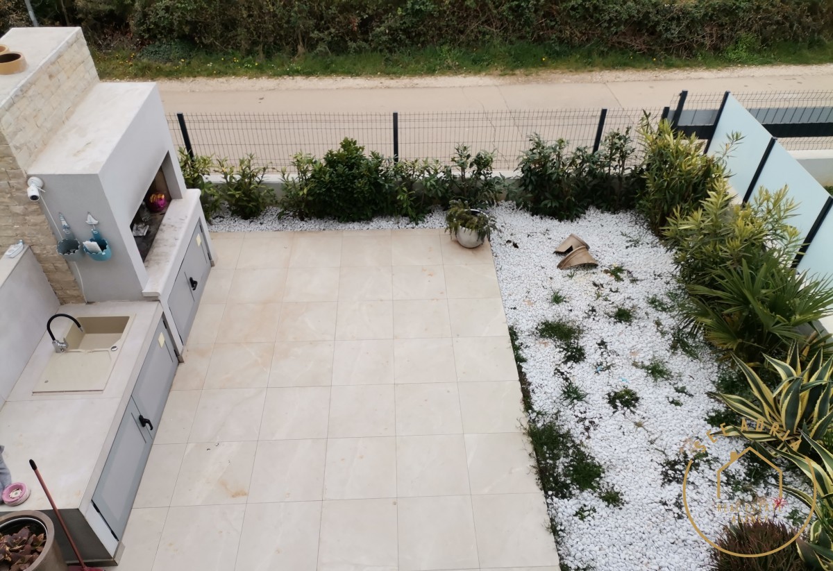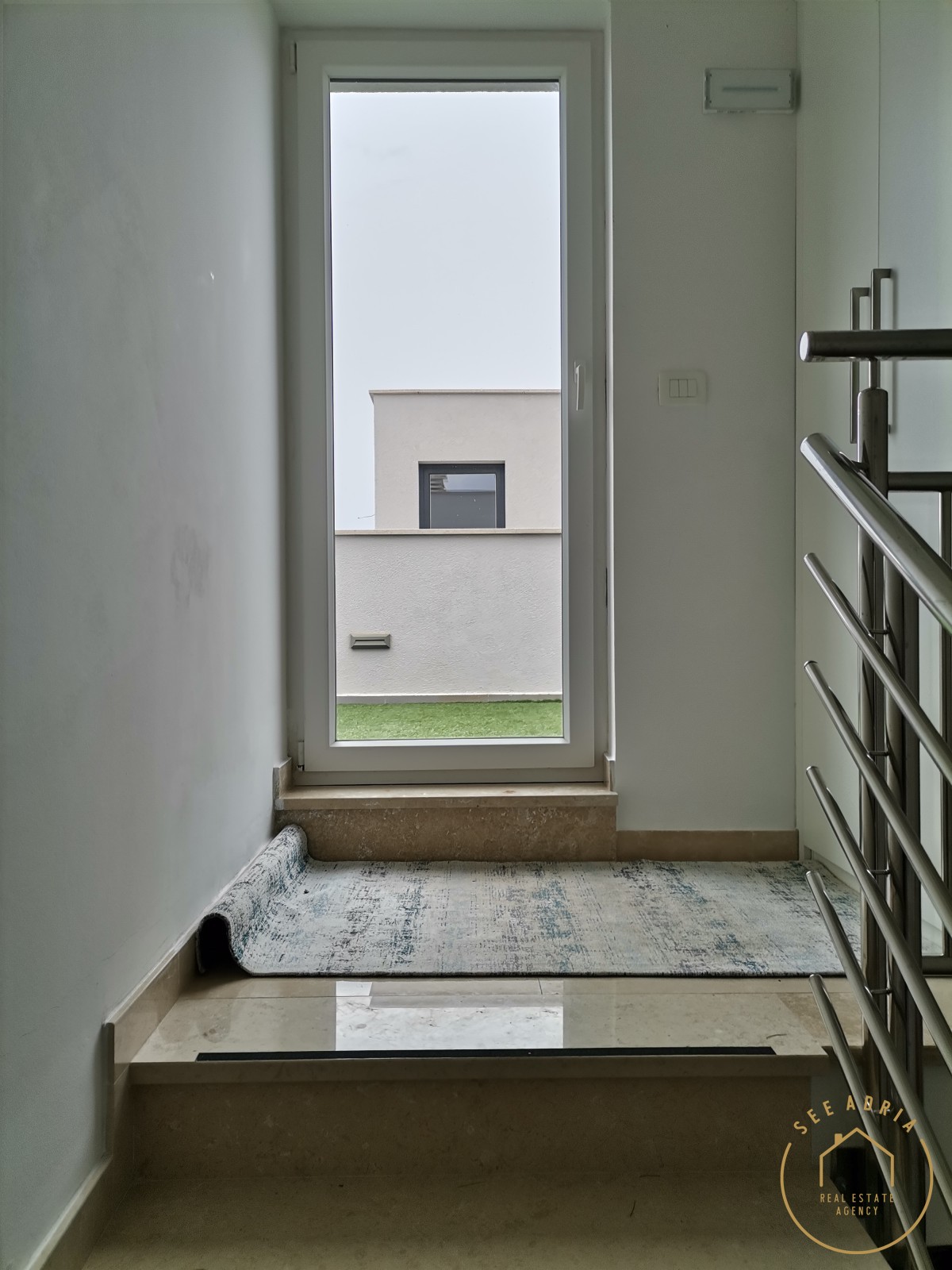 Ein modernes Reihenhaus von 94,80 m2 zu verkaufen. Das Erdgeschoss verfügt über ein Wohnzimmer, WC und