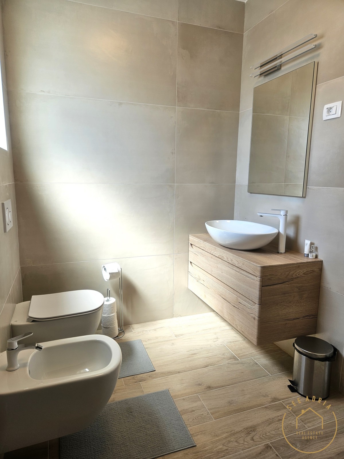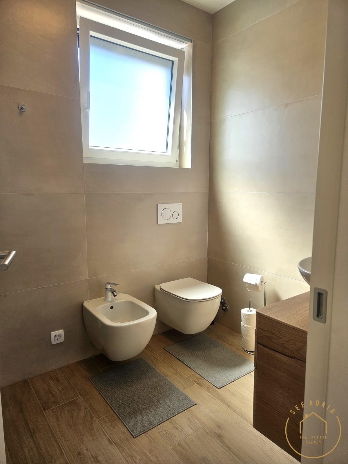 Badezimmer. Das Haus wird möbliert verkauft und verfügt über 2 Parkplätze.