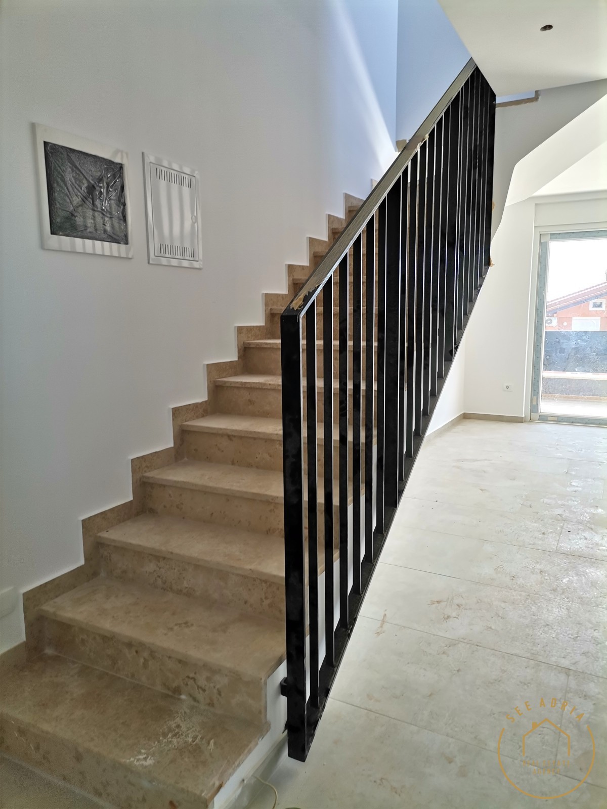 izlazi na natkrivenu terasu. Iz stana se stepenicama izlazi na krovnu terasu sa koje se
