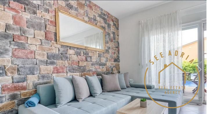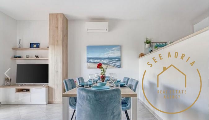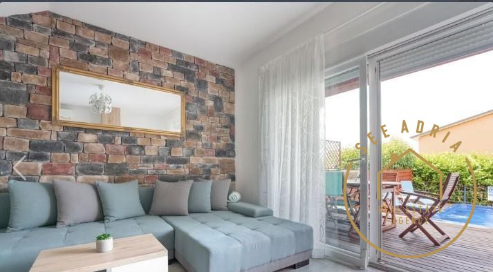La casa si trova in un tranquillo e pacifico villaggio istriano Valica. Il piano terra è composto da soggiorno, cucina, bagno e un terrazzo più ampio come prolungamento del "soggiorno aperto" con parete in vetro. Al piano superiore due camere da letto e un bagno. I piani sono collegati da scala interna.